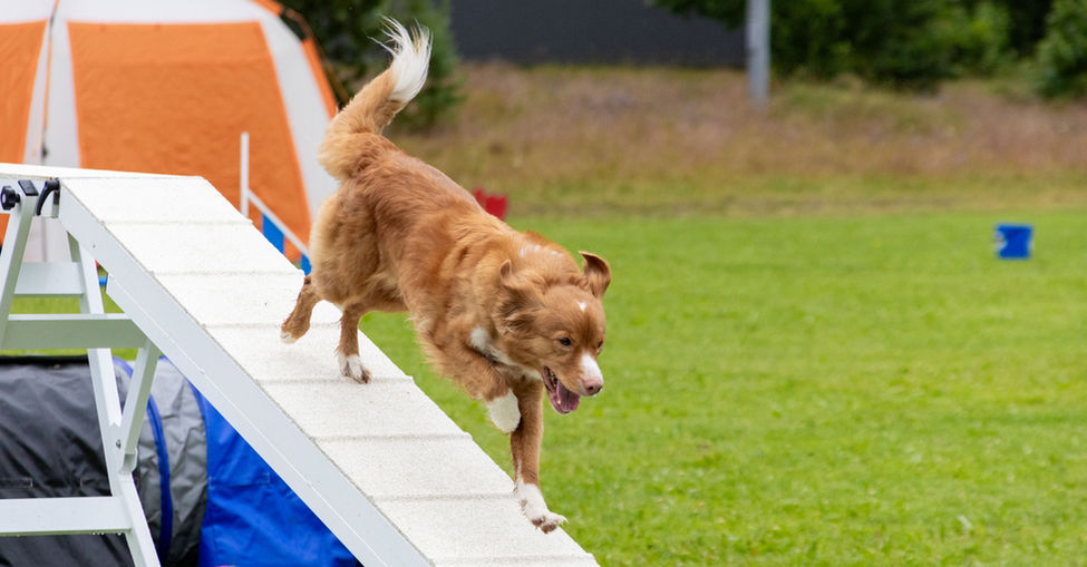 Hunden skal hoppe over hinder og gjennom hjul, hoppe langt, løpe gjennom tunneler, gå slalom, balansere på en bom, løpe over et møne og over en vippe. Fører skal styre hunden ved hjelp av kommandoer og kroppsspråk!
